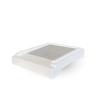 Lüftungs- und Varroagitter aus Aluminium,zum Flugloch hin schräg abfallend, feste, kurze Anflugnase von 4 cm, Laufschacht für einen Bodenschieber, seitliche Griffmulden, Höhe 10 cm