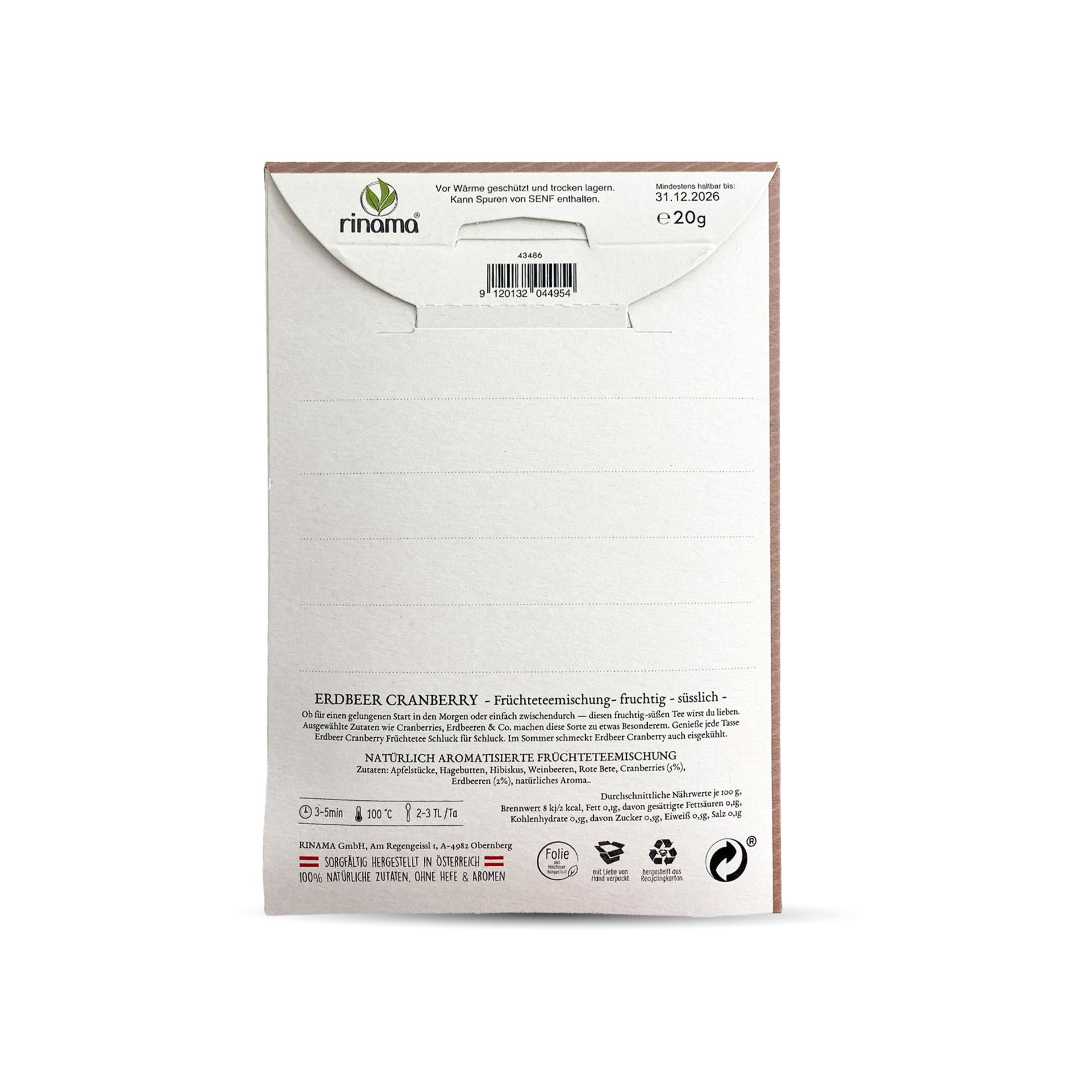 Zeigen Sie Ihre Dankbarkeit auf eine besondere Weise mit der Grußkarte "Danke". Diese elegante Karte verbindet eine herzliche Botschaft mit einer natürlich aromatisierten, fruchtigen Erdbeer Cranberry Früchteteemischung.