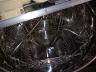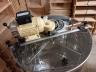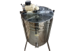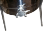 Motor-Oberantrieb 230 V / 110 W mit stufenloser Drehzahlregulierung und Sicherheitsschalter am Deckel, aufgebaut auf massiver Edelstahltraverse Plasma-verschweißter Edelstahlkessel Bodengleicher Edelstahl Quetschhahn mit einer Auslaufhöhe von ca. 42 cm Tangential Rundgitterkorb aus Edelstahl ohne Mittelwelle passend für 4 Rähmchen bis 31 cm z.B. Normalmaß, Zander, Dadant US, Dadant Blatt, Kuntzsch-Hoch Massive Beinkonstruktion für einen sicheren Stand auch unter Last Vorderdeckel mit Scharnieren und Knauf Kesselhöhe aufgebaut 106 cm, Ø 53 cm